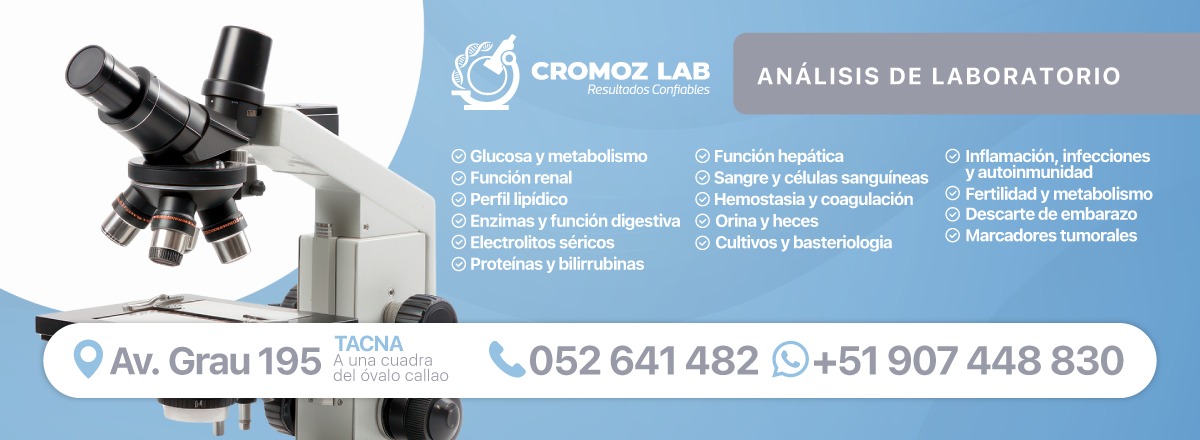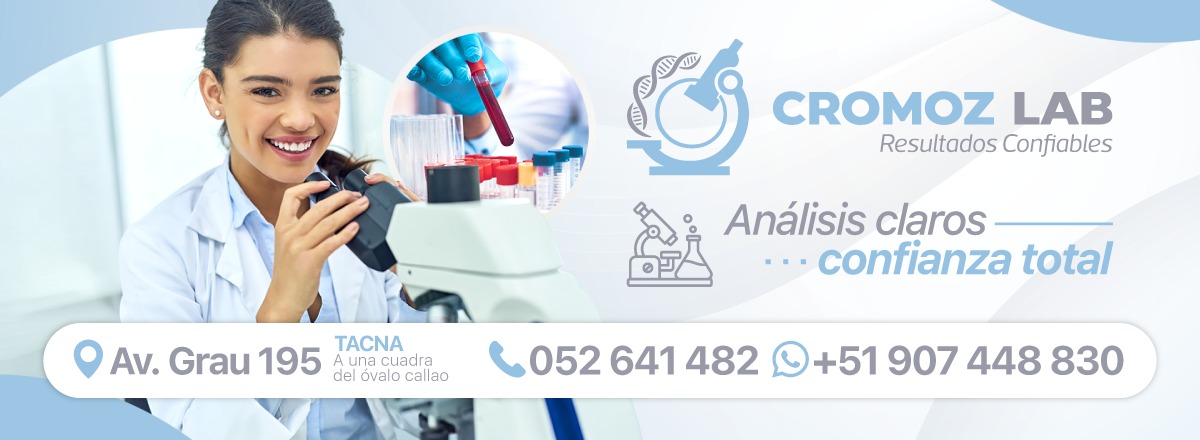 CROMOZ LAB Laboratorio Clínico & Anatomía Patológica En CROMOZ LAB trabajamos con un firme compromiso: brindar resultados confiables, oportunos y de alta calidad para apoyar decisiones médicas precisas. Dirigido por un Tecnólogo Médico Especialista en
