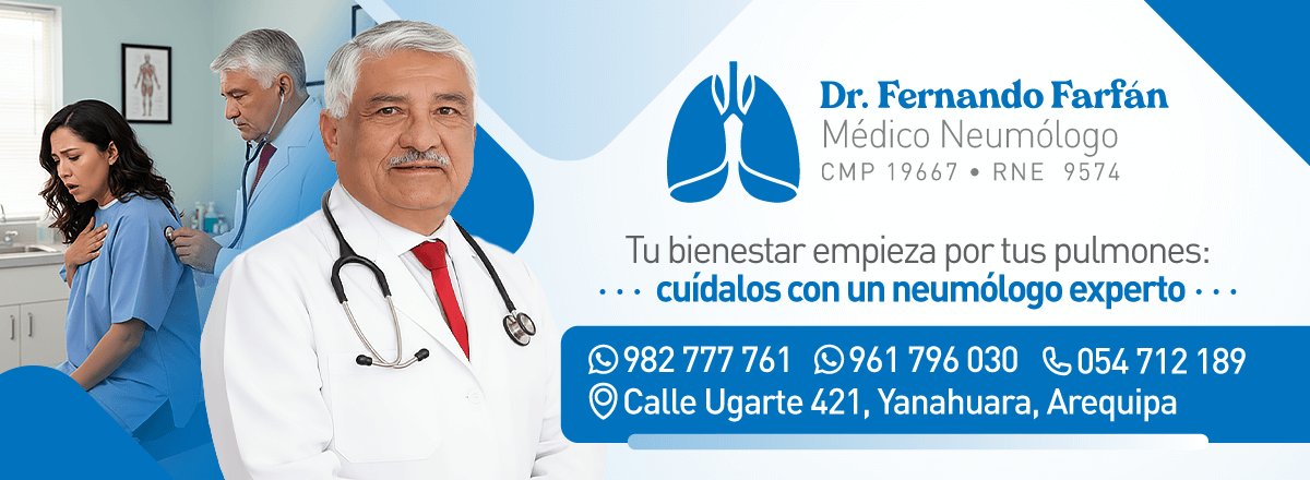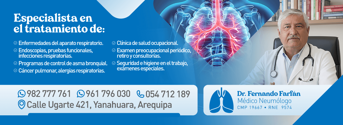 El Dr. Fernando Farfán Delgado es un médico neumólogo especialista en el tratamiento y atención de enfermedades del aparato respiratorio.