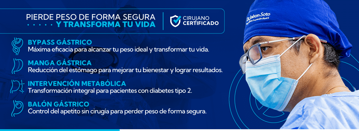 Experto en Cirugía Bariátrica y Laparoscopia Digestiva especializada con una sólida experiencia en cirugía bariátrica y laparoscópica avanzada, el Dr. Jaison Soto es un destacado médico cirujano. Actualmente, presta sus servicios en el Hospital Nacional Arzobispo Loayza y en la Clínica de la Obesidad, Cirugía Bariátrica.