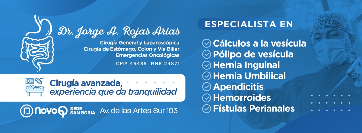 Formado en la mejor escuela de Cirugía General y Laparoscópica en el Hospital Nacional Cayetano Heredia.